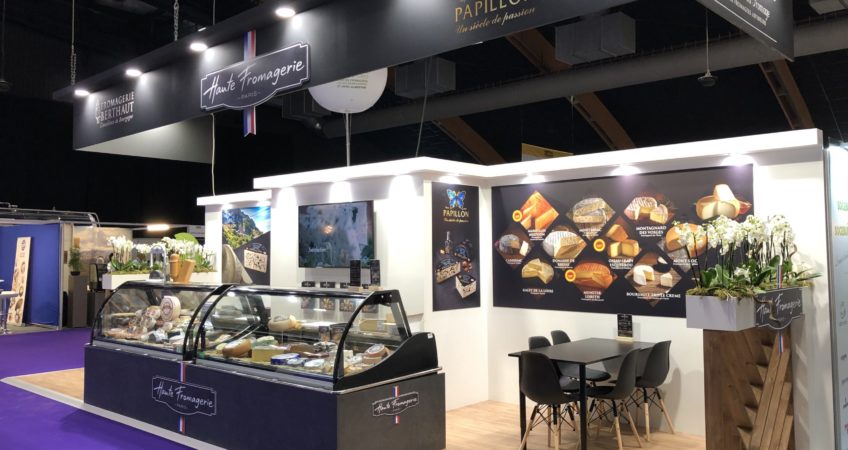 À l’occasion du Salon Mondial du fromage, la Haute Fromagerie a fait appel à nos services pour réaliser son stand à la fois chic et moderne.